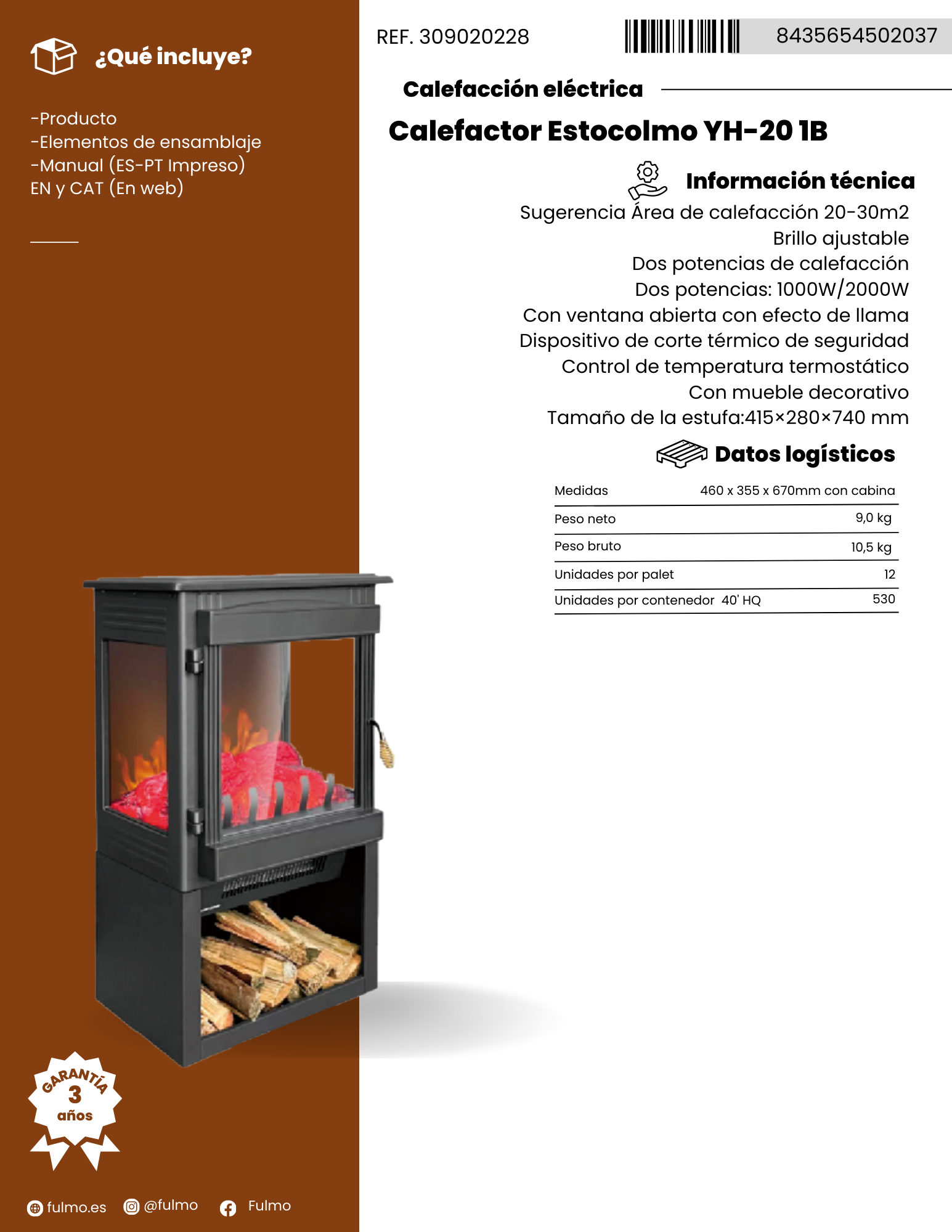 El Calefactor Eléctrico Estocolmo YH-201B es una solución práctica y decorativa para climatizar tu hogar con estilo. Su diseño tipo estufa, combinado con un realista efecto llama, crea una atmósfera cálida y acogedora sin necesidad de instalación ni mantenimiento.
